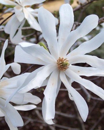 Магнолия Звездчатая – листопадный куст или небольшое деревце с округлой кроной. Листья обратнояйцевидные 6-10 см длиной и 5 см в ширину, светло-зеленые или зеленые, блестящие. Цветение март-апрель. Цветет до распускания листьев. Звездчатые цветки с 12-15 (до 40) лепестками, белые с приятным запахом.