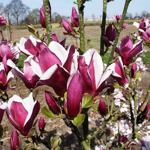 Цветение завораживающее – нежные тюльпановидные цветы пурпурно-красные снаружи и розовые, почти белые внутри. Диаметр 10-20 см. Магнолии предпочитают места защищенные от ветра и сквозняка.  Лучшим местом для посадки будет солнечный, в южных районах – слегка притененный участок с легкой плодородной почвой – оптимально нейтральная и слабокислая почва, богатая органикой. Зимостойкость -29 °C